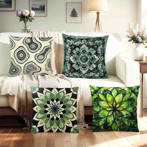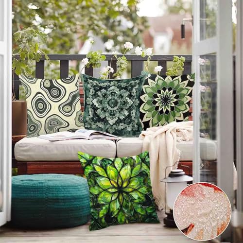 Grün Kissenbezug 65×65 4er Set, Outdoor Kissen Abstrakt Sofakissen Weicher mit Verstecktem Reißverschluss, Beidseitiger Druck Dekokissen für Schlafzimmer Balkon Zimmer Deko Wohnzimmer -hjw2505N5