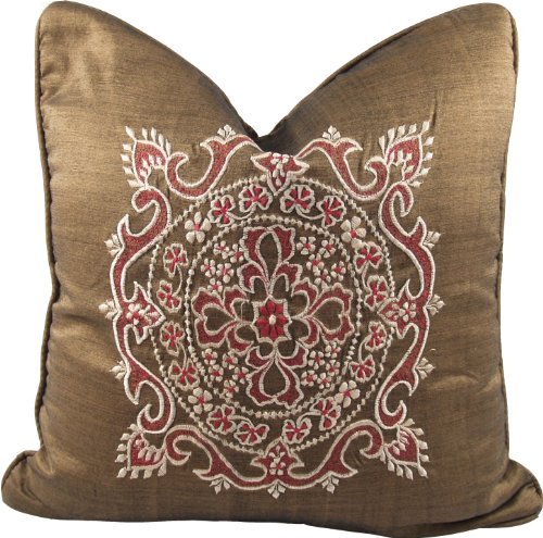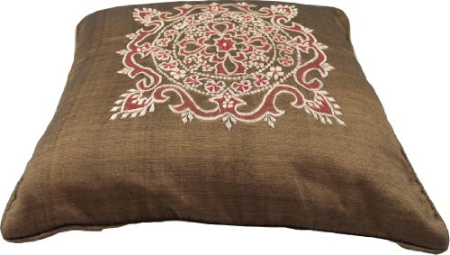 GURU SHOP Bestickte Kissenhülle, Kissenbezug – Mandala Bali Braun, Synthetisch, 40x40x0,5 cm, Zierkissen, Dekokissen, Sofakissen
