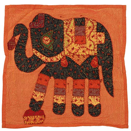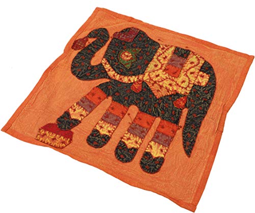 GURU SHOP Indische Kissenhülle, Besticktes Elefanten Ethnostyle Kissen – Orange, Baumwolle, 40×40 cm, Zierkissen, Dekokissen, Sofakissen