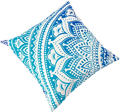 GURU SHOP Mandala Kissenhülle, Bedruckte Boho Kissenhülle – Blau, Baumwolle, 40x40x0,5 cm, Zierkissen, Dekokissen, Sofakissen