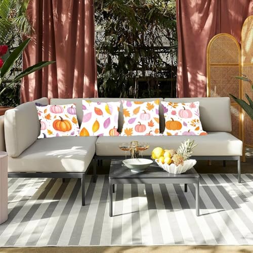 【PERFEKTES GESCHENK UND DEKORATION】: Fügen Sie das Set der 4-Wurf Kissenbezüge noch heute zu Ihrer Wohnkultur hinzu und verwandeln Sie Ihren Wohnraum in eine Oase des Komforts und Stils. Sie sind die perfekte Wohndekoration, geeignet für den Garten, Hof, Wohnzimmer, Büro, Café Balkon und fügen einen eleganten Look zu jedem Raum