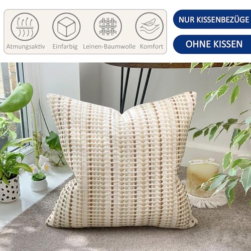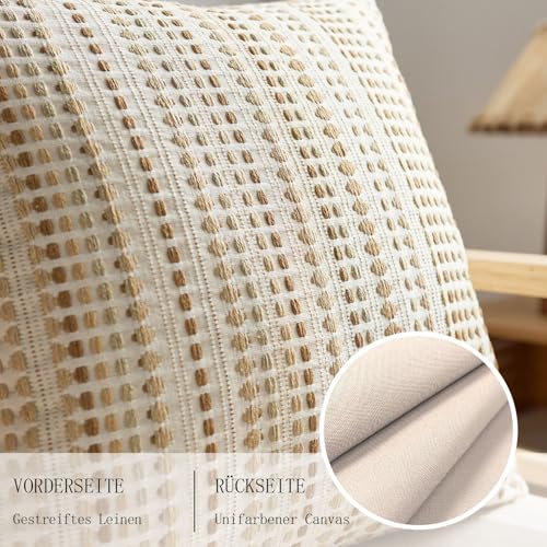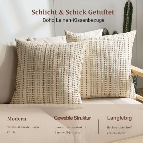 Habodd 2er Set Boho Kissenbezug 45×45 Baumwolle Leinen Kissenhülle Braun Beige Sofakissen Punkt Gestreift Strukturiert Netural Dekokissen Kissenbezüge für Sofa Wohnzimmer Schlafzimmer Outdoor Kissen