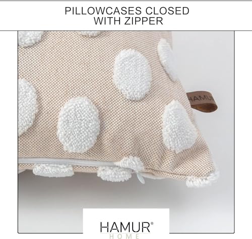 HAMUR HOME 2er Set Kissenbezüge 30×50 cm Boho Dekokissen Kissenbezug Sofakissen Dekorativ Couchkissen Kissenhülle Zierkissenbezug Set Kissen für Wohnzimmer Schlafzimmer (Line, Ecru)