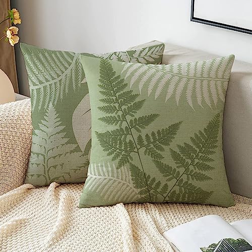 Hangood Kissenbezug Groß Blätter Grün Deko Kissenhülle Dekorative Dekokissen Sofakissen Bezug für Sofa Schlafzimmer 40cm x 40cm 16×16 Zoll für Zimmerdekoration