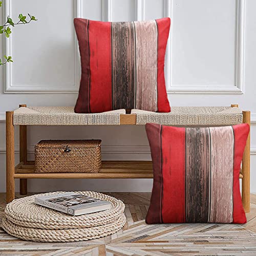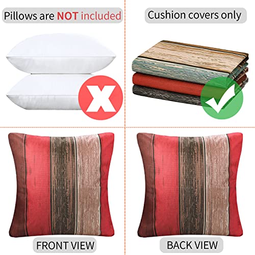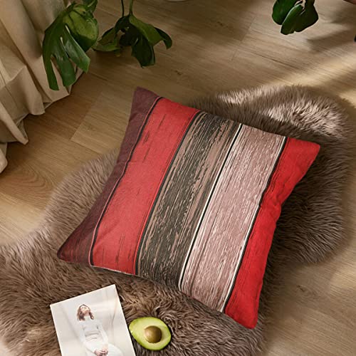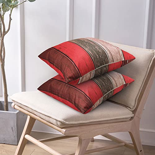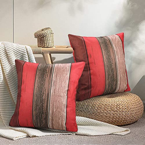 Hanrunsi Kissenbezug Rot 50×50 Leinen Dekokissen Farbigen Streifen Bauernhaus Rustikale Scheune Holz Textur Rot Orange Grau Kissenbezug für Sofa 2er Set