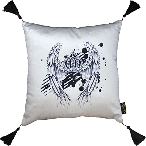 Harald Glööckler Luxus Deko Barock Kissen mit Engelsflügel Mod2 Pompöös by Casa Padrino Creme/Schwarz Krone Deluxe mit Troddeln – Glööckler Kissen