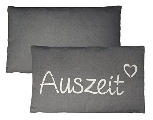 Haus und Deko Kissenbezug Auszeit 30×50 cm Baumwolle Kissenhülle Dekokissen Zierkissen Bezug Grau/Natur