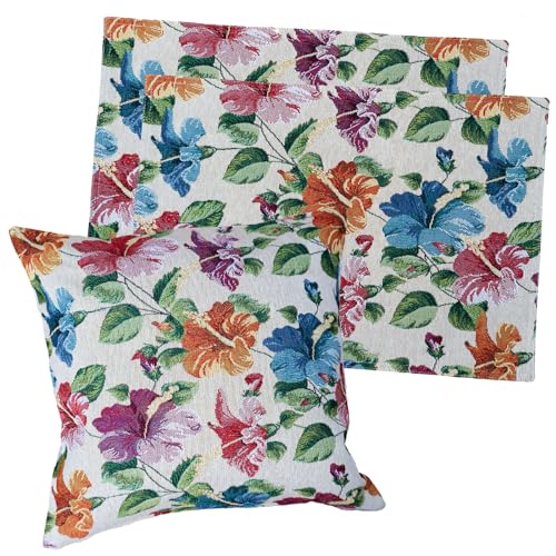 PRODUKTDETAILS: 1 Kissenhülle I ca. 40 x 40 cm I mit verdecktem Reißverschluss I ohne Füllung I Die Dekokissen sind universell pflegeleicht I Flecken lassen sich leicht auswaschen I Handwäsche wird empfohlen andererseits vulgo eine Maschinenwäsche bei 30° ist für den edlen Stoff kein Problem I Motiv Hibiskus Blüten I Modern Garden