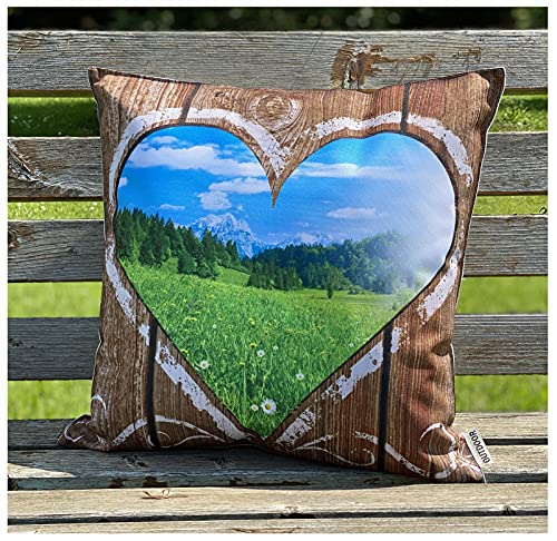 1 Outdoorkissen unter Zuhilfenahme von brillantem Digitaldruck 45 x 45 cm inkl. Ladung Lotuseffekt, schmutz- unter anderem wasserabweisend, schnelltrocknend, Dauerhaft Pflegeleicht, maschinenwaschbar, Ökotex zertifiziert Alpstyle-Grund, Aussicht unter Zuhilfenahme von Herz