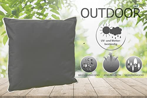 1 Outdoor Dekokissen in Anthrazit Grau mit abgesetztem Paspelsaum in weiß
