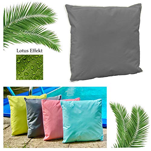 Jetzt wird es bunt im Garten… Unsere neuen Outdoorkissen in angesagten frischen Farben Acht geben ein gemütliches Ambiente im Outdoor Phase. Setzen Sie stilvolle Akzente auf ihre Gartenmöbel. Der leicht strukturierte Stoff ist überaus robust und hat trotz seiner besonderen Eigenschaften eine textile Optik und Haptik. Der Lotus-Effekt wirkt schmutz- und wasserabweisend. Wasserflecken abtrocknen schnell von neuem verloren und kleine Flecken lassen sich leicht spülen. Zudem sind die Kissenhüllen pflegeleicht bei 30° in der Flugzeug waschbar. Unsere Textilien sind schadstoffgeprüft und nach Ökotex Standard 100 zertifziert.