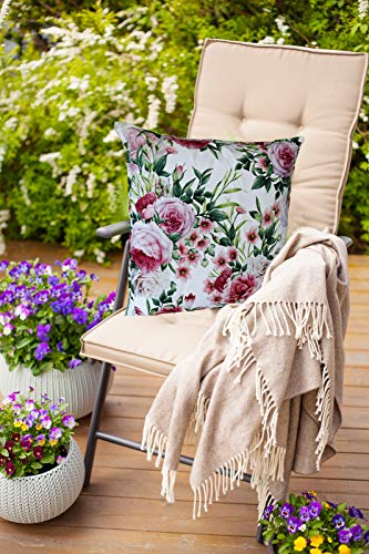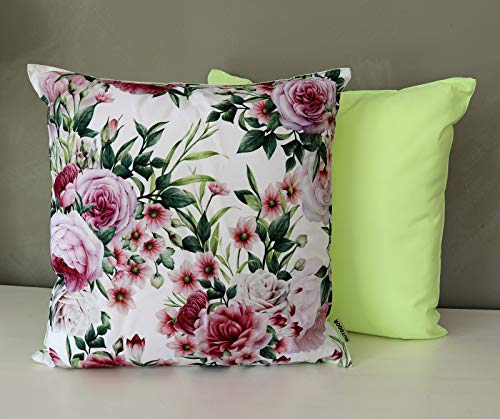 heimtexland ® Outdoorkissen Dekokissen Schmutz- und Wasserabweisend Landhaus Garten Outdoor Kissen Rosen Rosa Grün Typ675