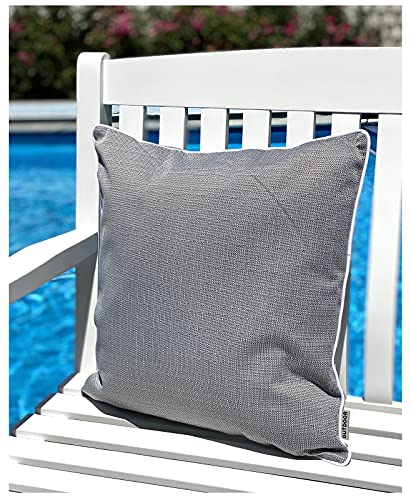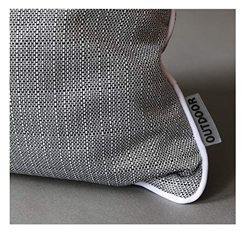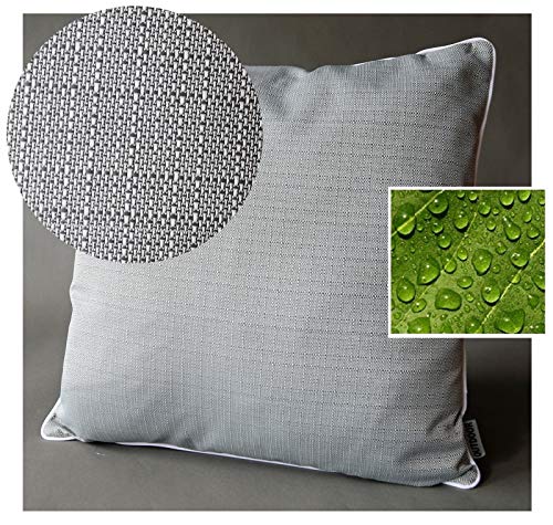 1 Outdoor Dekokissen mit textiler, melierter Webstruktur – schön verarbeitet mit Paspelsaum