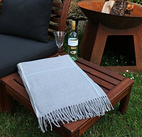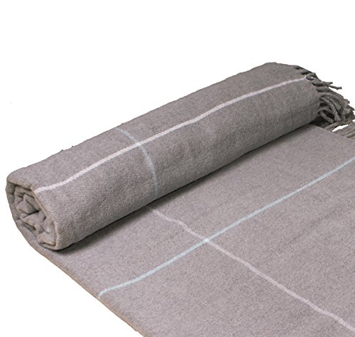 1 hochwertige Wohndecke in modernen natürlichen Farben mit Hilfe von Karomuster und Fransen