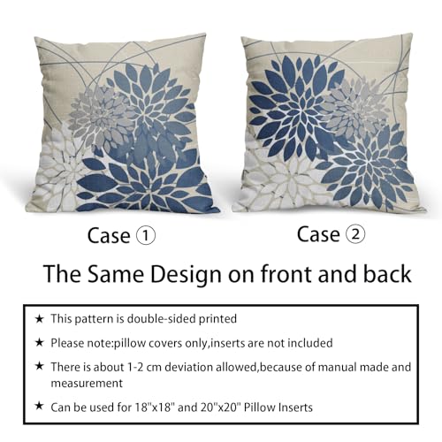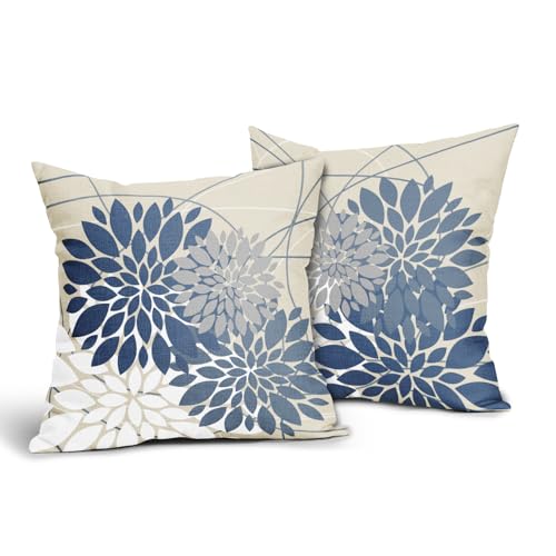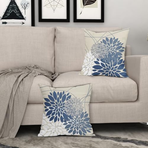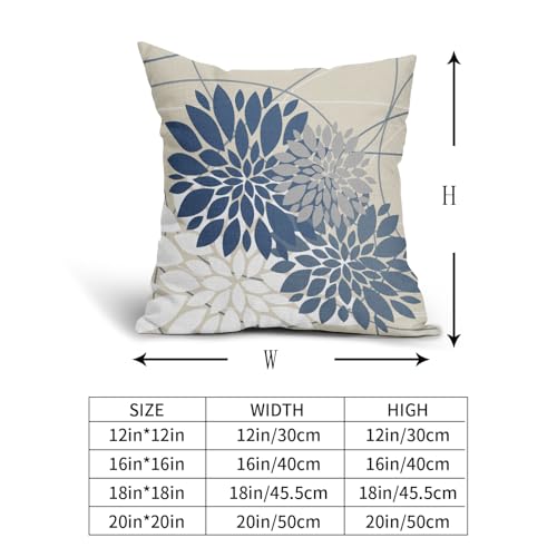 Hellblaue Blumen-Kissenbezüge, 45,7 x 45,7 cm, grau-weiß, Dahlie, Blume, Frühling, dekorative Dekokissen, Bauernhaus, Outdoor, saisonale Dekoration für Zuhause, Sofa, Bett, Couch, moderne quadratische