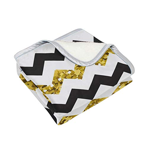 hengpai Glitzernde Goldfarbene Zickzack-Druck-Kinderdecke, weiche Decke für Bett, Couch, Sofa, Überwurf 152,4 x 228,6 cm, für Damen und Kinder