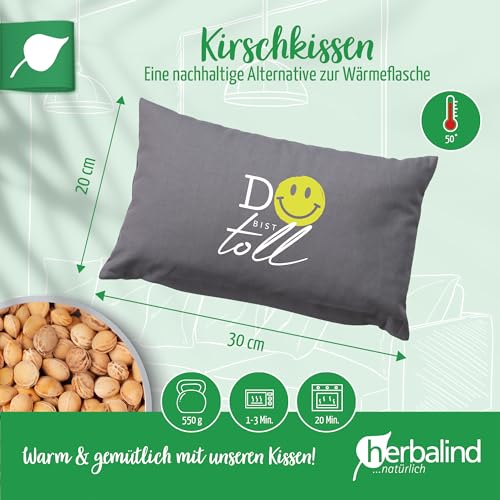 HERBALIND Kirschkernkissen „Du bist toll“ mit Smiley 30x20cm grau/weiß – moderne Akzente