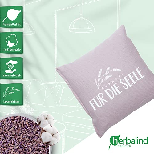 😴 HERBALIND LAVENDELKISSEN 20x20cm – gefüllt mit 110g echten natürlichen, getrockneten Lavendelblüten und Schafschurwolle, ohne Addendum von weiteren Duftstoffen. Ohne chemische Zusätze. Der Bezug besteht alle 100% Baumwolle. Vor Gebrauch das Kissen leicht auskippen, so können die Lavendelblüten ihre volles Aroma entfalten. Riecht intensiv und unaufdringlich nach Lavendel. Ein Traumkissen für guten Schlaf.