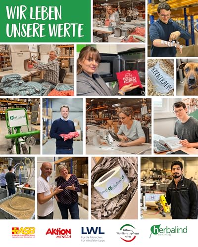 🏆 MADE IN GERMANY – Unsere Kissen werden in unserem Inklusionsunternehmen in Handarbeit gefertigt, gefüllt und konfektioniert! Natürliche Füllstoffe sind kennzeichnend für unsere hochwertigen Produkte. Wir rödeln nachhaltig und passend. Made in Germany. HERBALIND wurde 2002 gegründet, setzt auf den Wirtschaftsstandort Deutschland und beschäftigt über 40% Mitarbeiter mit Einschränkungen.