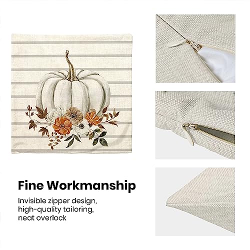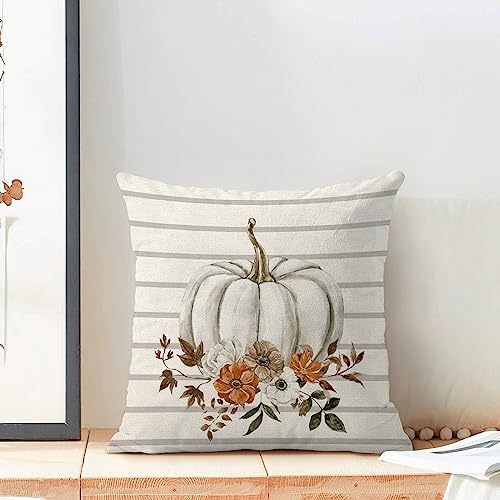 Herbst-Kissenbezüge sind es wert, Kissenbezüge für Ihr Sofa oder Bett zu bestellen. Diese dekorativen Kürbis-Kissenbezüge können einen Tag Ihrer körperlichen und geistigen Müdigkeit entspannen. Grau gestreifte Kissenbezüge sind geeignet für Wohnzimmer, Bett, Sofa, Couch und Schlafzimmer, Büro, Terrasse, Veranda usw.