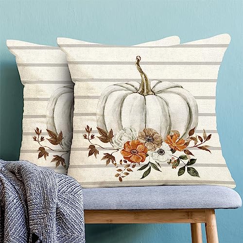 Hochwertiges Material: 2 x importierte Kissenbezüge (Kissen nicht enthalten). Aus strapazierfähigem Polyester-Leinen-Material. Der Aquarell-Kürbis-Kissenbezug ist angenehm zu berühren und darauf zu legen. Verformt sich nicht und abgefärbt nicht.