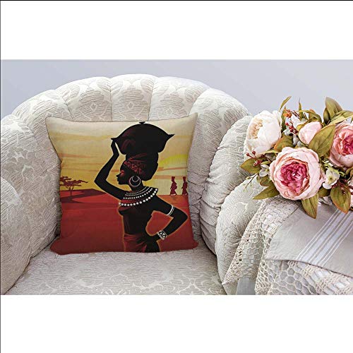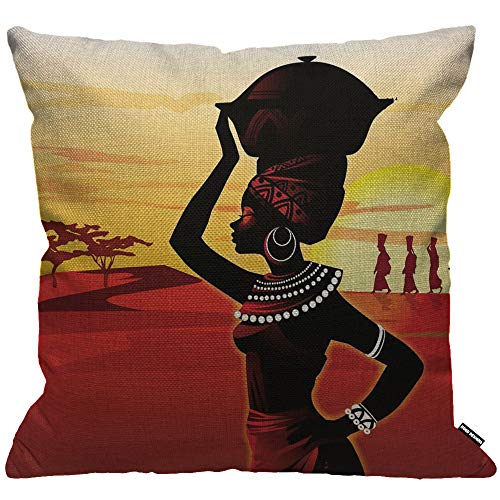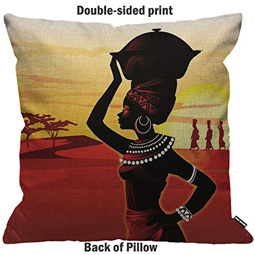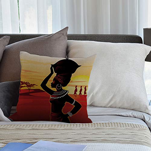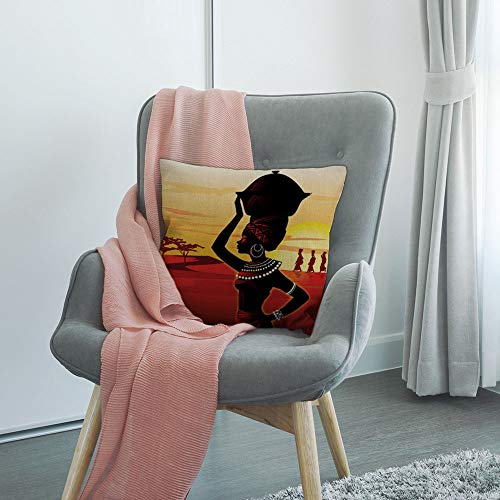 HGOD DESIGNS Kissenbezug Afrikanische Frauen Gehen Auf Der Wüste Sonnenuntergang Rot Gelb Schwarz Kissenhülle Haus Dekorativ Für Jungen/Mädchen Wohnzimmer Schlafzimmer Kissenbezüge 45X45cm