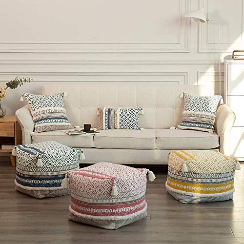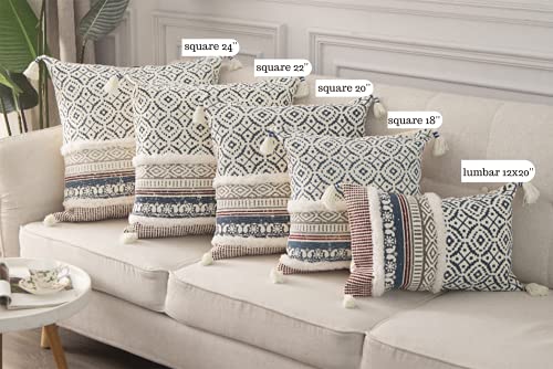 hi-home 1 Stück Boho Kissenbezug, Dekorative kissenbezüge mit Quaste Baumwolle Sofakissen 45x45cm Kissenhülle Dekokissen Kopfkissenbezug Kissen Boho Style für Sofa Schlafzimmer Wohnzimmer (Blau)