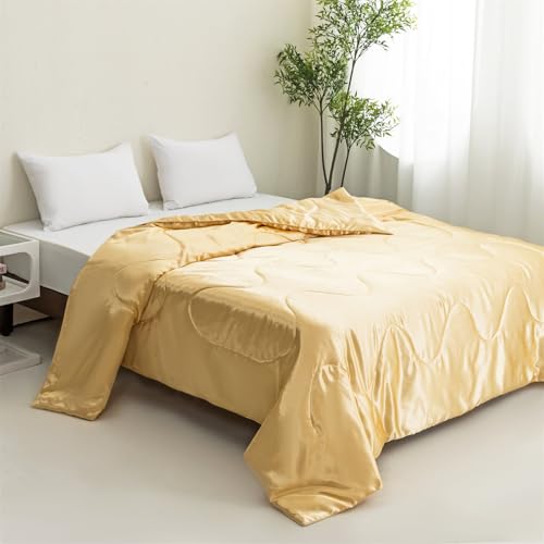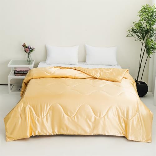Highdi Tagesdecke Wohndecke, Einfarbiger Satin Mikrofaser Bettüberwurf de Gesteppt, Weich Hautfreundlich Bettdecke, Atmungsaktive Leicht Dünn Sommerdecke, Sofaüberwurf Wohndecke (Gold,220x260cm)