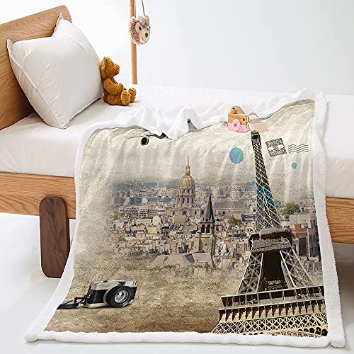 Himlaya 3D Gedruckte Wohndecke Tagesdecke Decke Fleecedecke Polyester Weich Wärme Gemütlich Bettüberwurf Erhältlich Dicke Sofadecke Deckeldecke (Beige Gebäude,120x90cm)