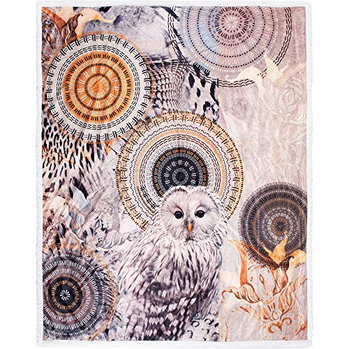 Hip Nicki-Velours Wohndecke „Siku“. Das imposante Eulenmotiv inmitten verspielter Mandalas zieht die Blicke auf sich. Zuhause auf dem Sofa oder unterwegs auf Reisen – Sie werden diese vielseitige Decke lieben. Das schmuseweiche, federleichte Wohnaccessoire wärmt gemütlich. Es ist doppellagig gearbeitet – die samtige Oberfläche gebannt mit Bezug auf das farbbrillante Druckmotiv, die Abseite besteht leer alleinig flauschigem Teddy-Fleece.