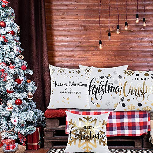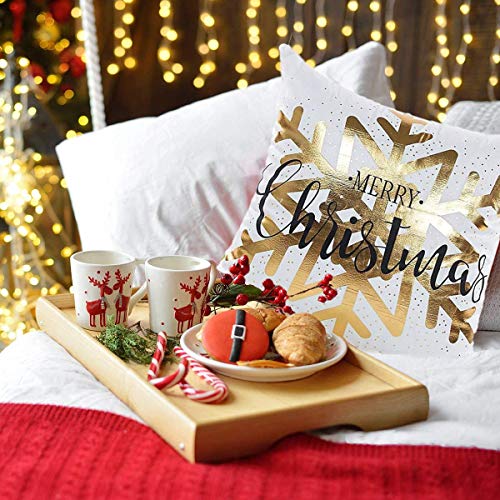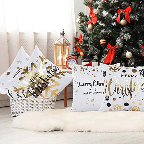 【Größe】Die Universalgröße des Kissens von 45*45 cm entspricht der Größe des Kissens in Ihrem Zuhause. Vier vergoldete Weihnachtskissenbezüge lassen sich einfach auf dem Sofa oder im Bett dekorieren, um eine festliche Atmosphäre zu tätig sein.