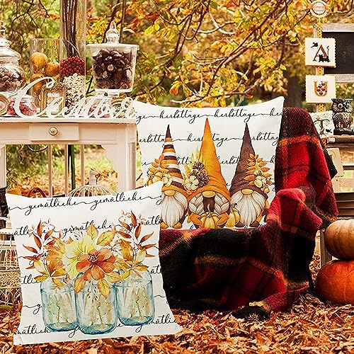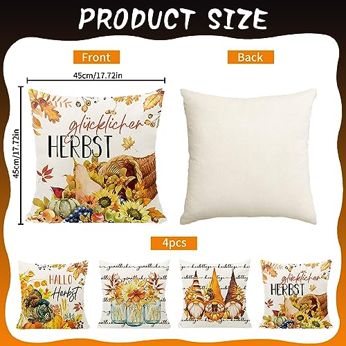 【Hochwertiger Stoff】: Herbstkissenbezüge sind aus hochwertigem Leinenstoff, bequem, langlebig und weich, genug für den Innen- und Außenbereich. Kein Problem mit Verblassen oder Ausfransen.(im Unterschied dazu Herbstkissenbezüge 45 x 45 cm, 4er-Set nicht enthalten Einlage oder Füller.