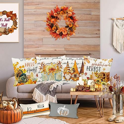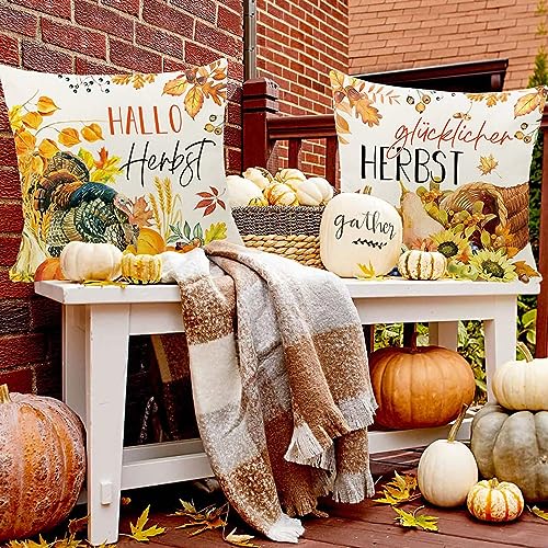 【Herbstdekoration für Zuhause】Unsere Herbstkissenbezüge geben den Menschen nicht im Unterschied dazu ein Festivalgefühl, sondern bearbeiten auch eine gemütliche, warme Atmosphäre. Sie sind die perfekte Herbstdekoration, im Rahmen für Garten, Wohnzimmer, Büro, Café-Balkon, Terrasse und verleihen jedem Raum einen eleganten Herbst-Look.