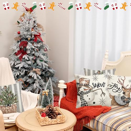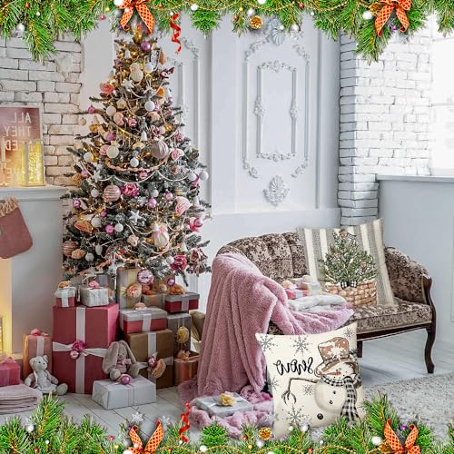 【Eleganter Hausdekor】 Kissenbezüge haben 4 klassische Muster,eine schnelle und einfache Möglichkeit, Ihrem Weihnachten einen festlichen Look über Diese Kissenbezüge beimischen, um eine traditionelle weihnachtliche Klima zu umackern ,bringt Ihnen die romantische Klima von Märchen.