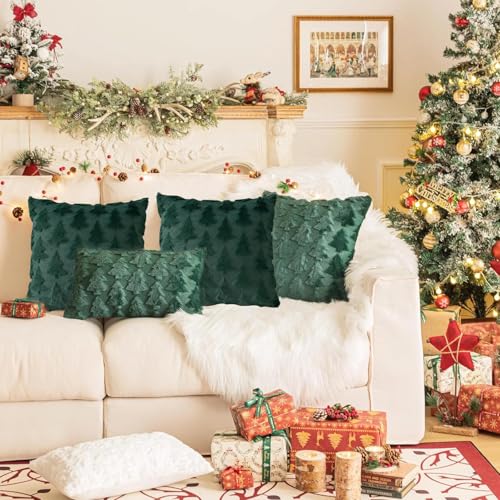 Weihnachtsdeko Kissen:Dieses Samt-Kissenbezug mit Weihnachtsbaum-Design verleiht Ihrer Wohnkultur einen festlichen Geist. Schnurzegal, ob auf dem Sofa, Stuhl oder Bett platziert, schafft eine warme und fröhliche Atmosphäre, die Ihnen und Ihrer Familie in dieser Saison Freude bringt,Das charmante Muster gibt ein niedliches