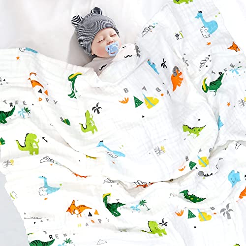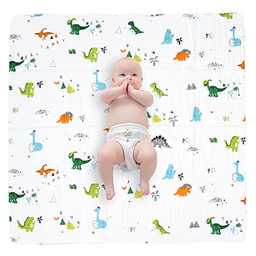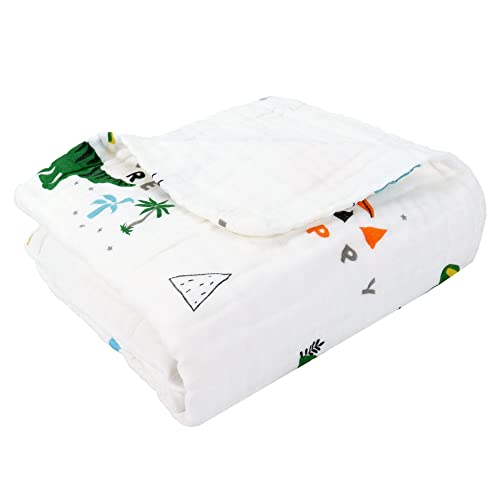 Hivia Musselin Babydecke 6 Lagig Kuscheldecke Baby Baumwolle Musselin Decke Kinder Wickeldecke Weiche Badetuch,Kinderdecke Decke für Neugeborene Mädchen Junge 110 x 110 cm (Dinosaurier)