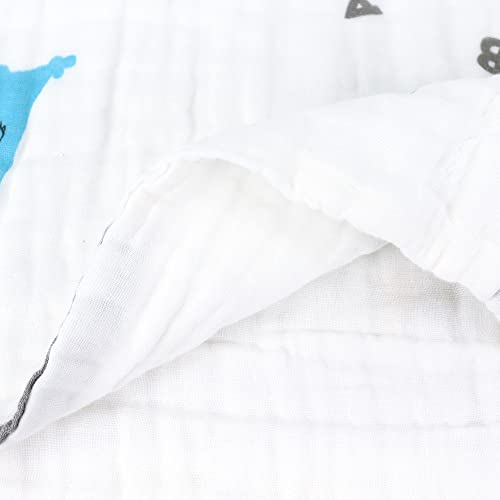 Süßes Cartoon-Design:Süße Cartoon-Muster, helle farben,modische Druckelemente sind ausgesprochen beliebt und das verbreiterte Kantendesign, hochwertige Mütter und Babys mögen es. Das Unisex-Musterdesign macht unsere Musselin-Decke zum perfekten Geschenk für Babypartys, Babyregistrierungsgeschenke, Weihnachtsgeschenke oder andere Anlässe.