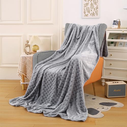 Hixingo Einfarbig Kuscheldecke Fleecedecke Wolldecke, Mikrofaser Sofa Überwurfdecke Kuscheldecke Hahnentritt Sofadecke, Weich Couchdecke Wohndecke Sofaüberwurf (70x100cm,Grau)