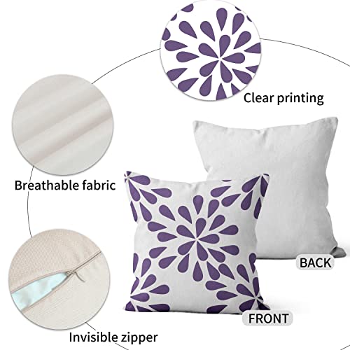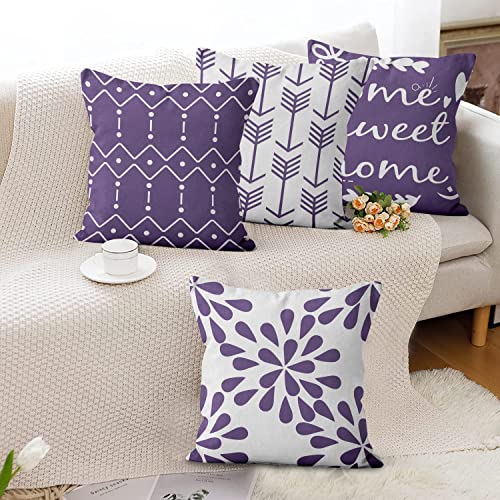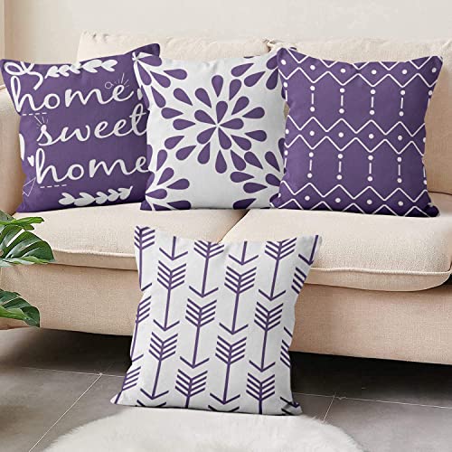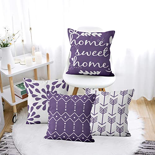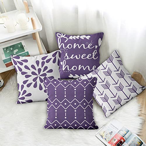 Hnmdmyi Kissenbezüge Lila und Weiß 45×45 4er Set, Boho Kissenbezüge Home Sweet Home Modernes Geometrisches Muster Neutrale Dekorative Leinen Kissenhülle für Sofa Couch Bett Garten Outdoor Home Decor