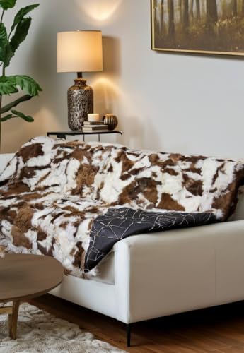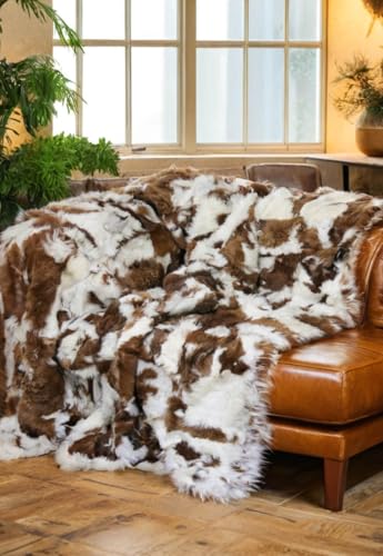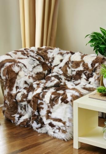 Hollert Lammfelldecke Toscana Modell 5 Braun/Weiß 210 x 185 cm Felldecke Kuscheldecke Wohndecke Tagesdecke Echtfell