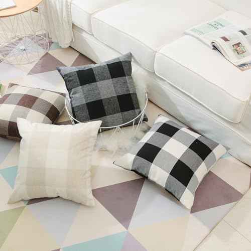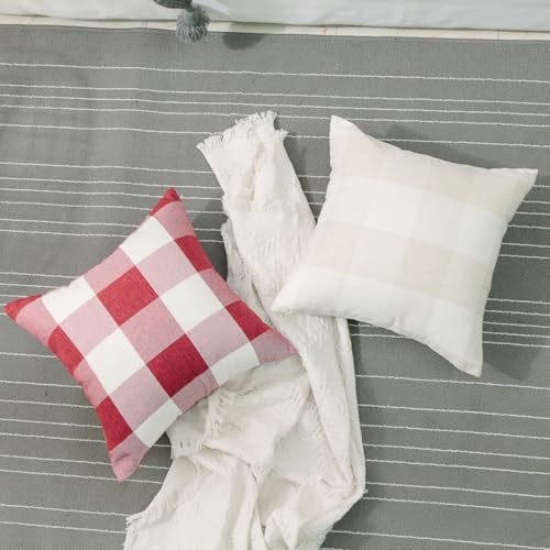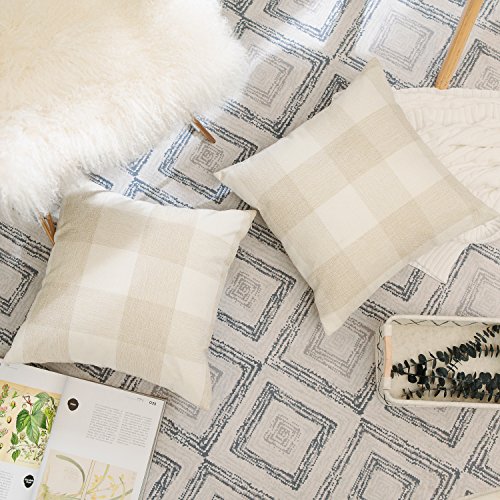 Home Brilliant Beigefarbene Kissenbezüge, strapazierfähig, für Kinder, Kunstleinen, kariert, Kissenbezüge 45 cm x 45 cm, für Sofa, Bett, Wohnzimmer, Dekokissen, 45 cm, Creme, 2 Stück, 45 cm