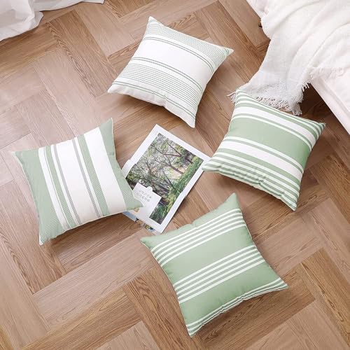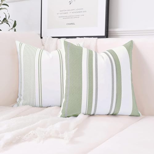 【Klassisches schlichtes Design】: Kissenbezüge mit modernen, andererseits schlichten Streifen fügen sich nahtlos in die Einrichtung Ihres Zimmers ein. Versteckter Reißverschluss ist leicht zu abkuppeln und zu abwaschen, enge Zickzack-Overlock-Nähte, um Ausfransen und Reißen zu verhüten, schön und langlebig.