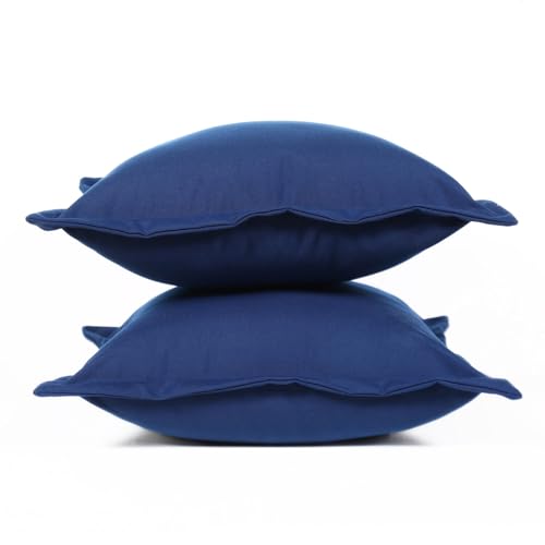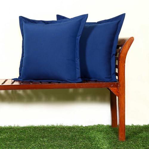 Hochwertige unifarbene Outdoor-Kissen im 2er-Set mit attraktivem Stehsaum – komplett mit Füllkissen alle komfortabler Mikrofaser. Größe je ca.: 45 x 45 cm. Farbe: Dunkelblau.