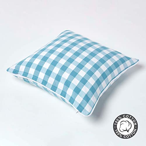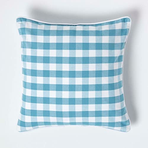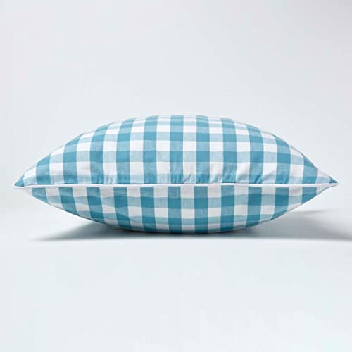 Homescapes blau Karierter Kissenbezug mit Groß-Karo-Muster, dekorative Gingham-Kissenhülle 45 x 45 cm für Sofakissen und Zierkissen aus 100% Baumwolle, mit Reißverschluss