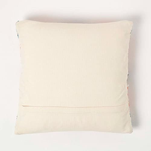 Für handgefertigte Kelim-Kissen von Homescapes werden Wolle und Baumwolle kunstvoll zu einer strukturierten Oberfläche mit traditionellem geometrischem Muster verwoben. Die einfarbig weiße Abseite aus 100 % Baumwolle ist mit einem praktischen Reißverschluss ausgestattet. Das exklusive Design in charakteristischen Farben verleiht jedem Raum ein besonderes Flair.