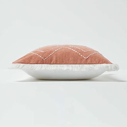 Das stilvolle Kissen mit Fransen und attraktivem Diamant-Stickmuster in erdigem Orange verleiht ganz Einrichtung einen dekorativen Boho-Touch. Die einfarbig weiße Abseite ermöglicht im Handumdrehen ein schlichteres Erscheinungsbild.