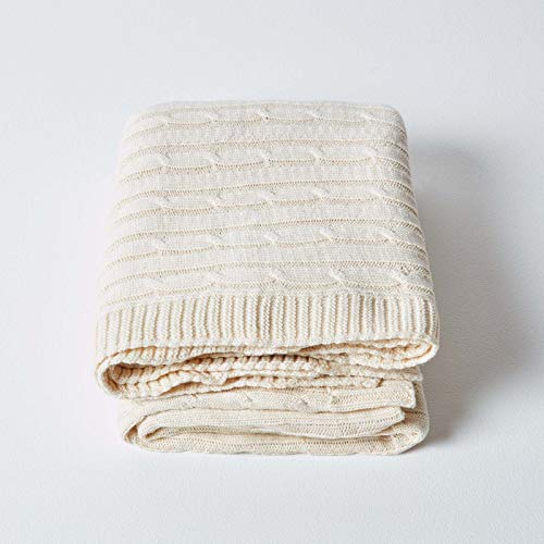 Homescapes gestrickte Tagesdecke, helle Wohndecke 150 x 200 cm in Creme, Strickdecke aus 100% Baumwolle, mit Zopfmuster, ideal als Sofaüberwurf, Kuscheldecke, Plaid oder Babydecke, cremeweiß