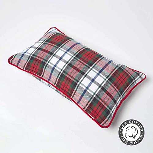 Kissenbezug mit traditionellem Schottenkaro-Muster aus 100% Baumwolle. Größe: ca. 30 x 50 cm, Farbe: rot-weiß-grün.