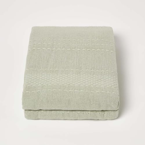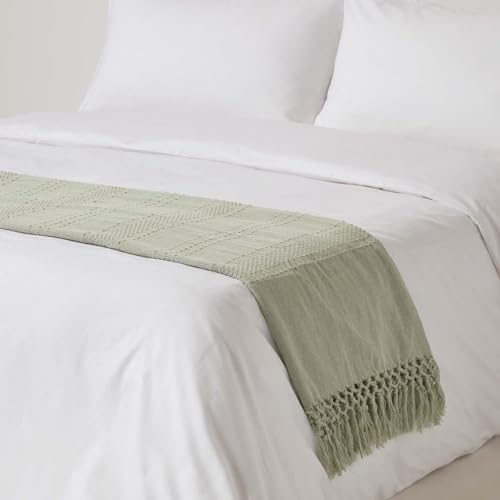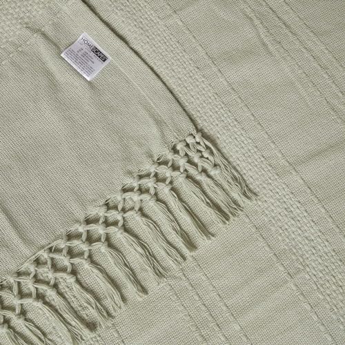 Homescapes Kashi Tagesdecke grün 225×255 cm, große Baumwolldecke mit Fransen, Überwurfdecke Sofa oder Bett