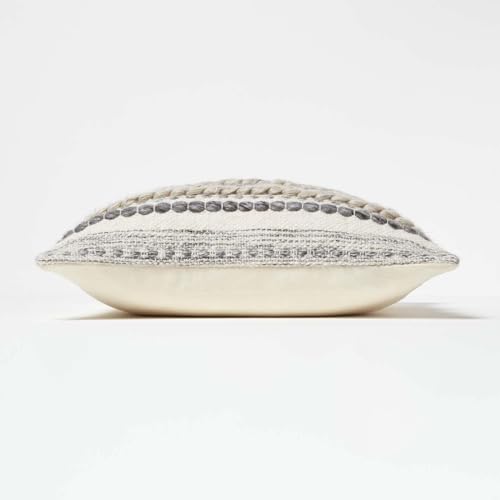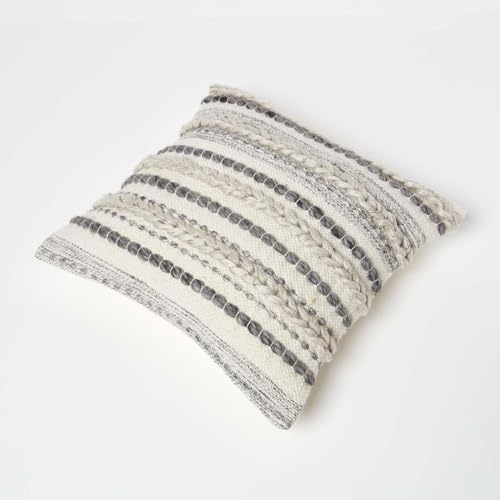 Exklusives, handgewebtes gestreiftes Kelim-Kissen Fyn via Flecht-Elementen und komfortablem Füllkissen. Größe ca.: 45 x 45 cm. Farbe: Creme-In den betreffenden Zeitabschnitt nicht hineingehörend.